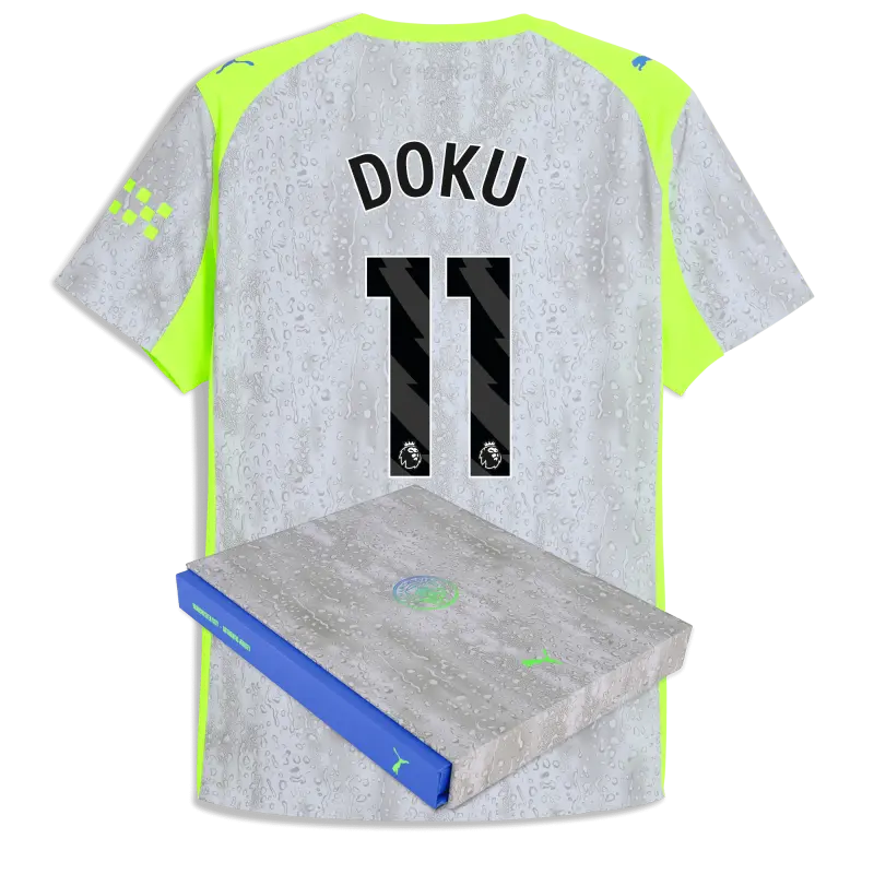 Manchester City Third Authentic Jersey 2025/26 With DOKU 11 Printing in Gift Box