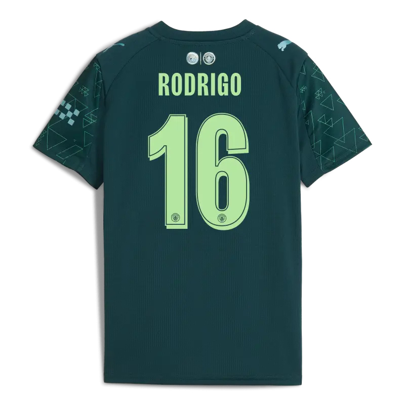 Kids’ Manchester City Away Jersey 2025/26 With RODRIGO 16 Printing