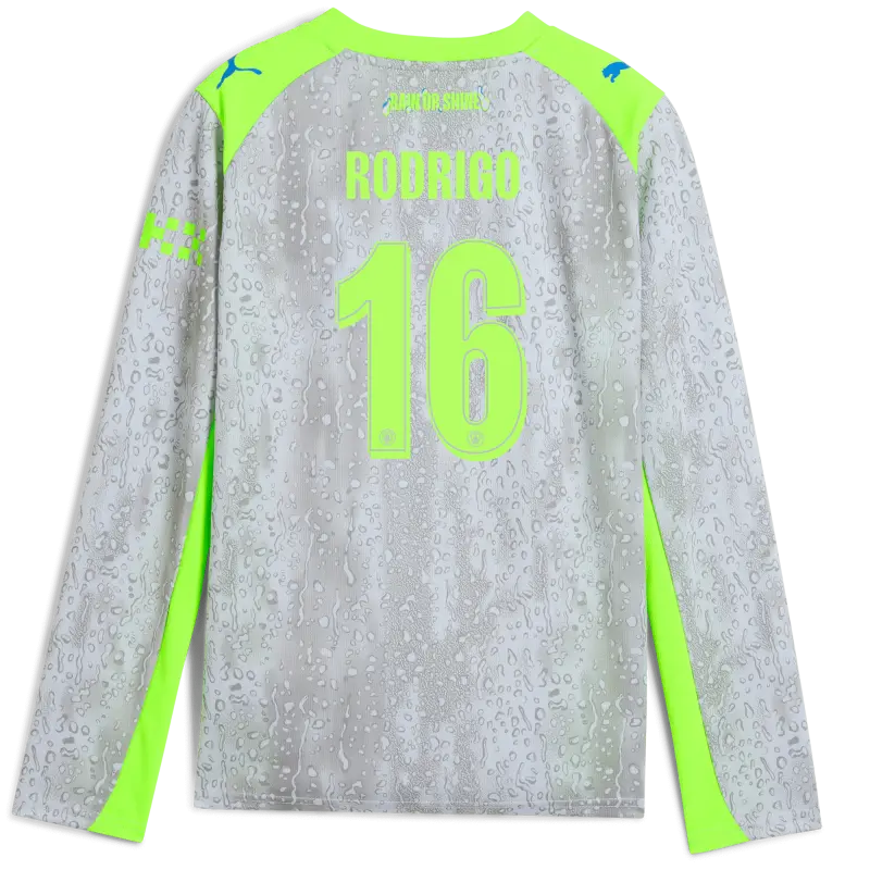 Kids’ Manchester City Third Jersey 2025/26 Long Sleeve With RODRIGO 16 Printing
