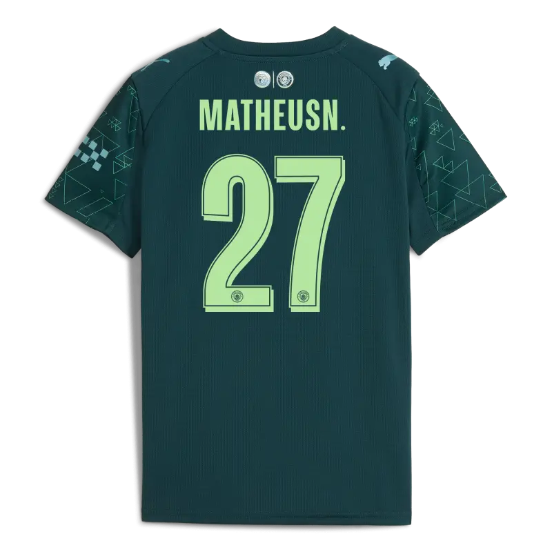 Kids’ Manchester City EA SPORTS FC Jersey 2025/26 With MATHEUS N. 27 Printing