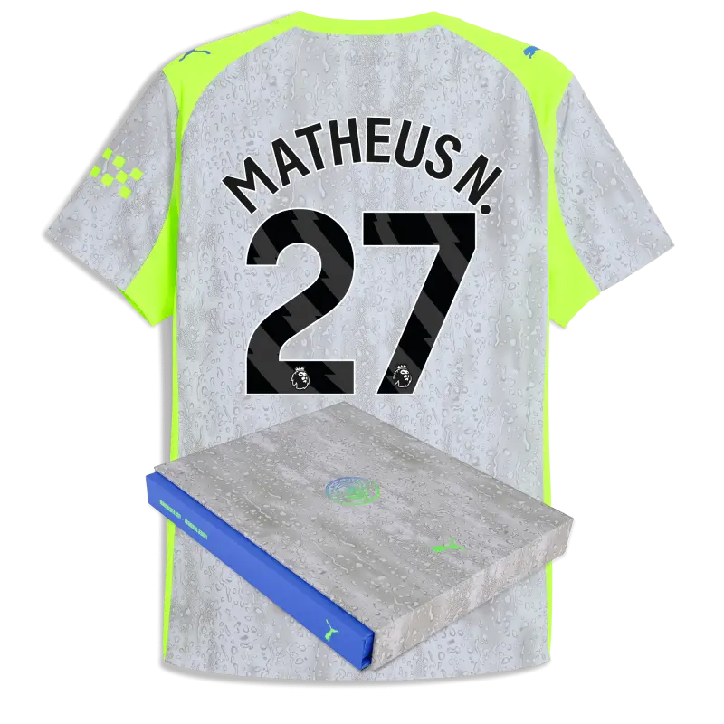 Manchester City Third Authentic Jersey 2025/26 With MATHEUS N. 27 Printing in Gift Box