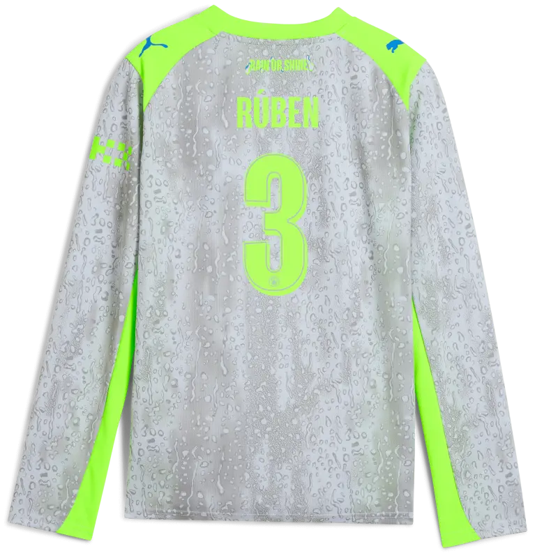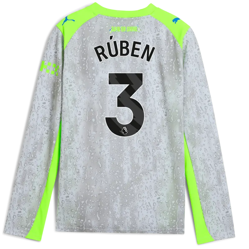 Kids’ Manchester City Third Jersey 2025/26 Long Sleeve With RÚBEN 3 Printing