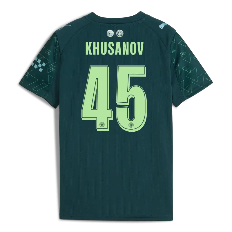 Kids’ Manchester City Man City Away Jersey 2025/26 With KHUSANOV 45 Printing