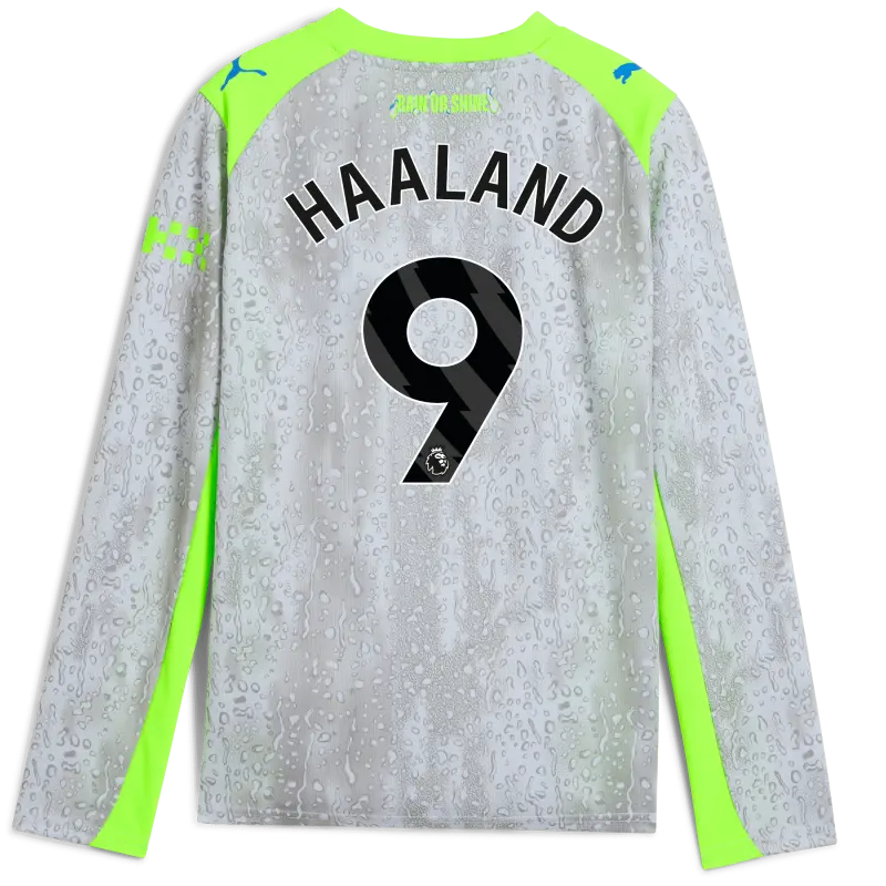 Kids’ Manchester City Third Jersey 2025/26 Long Sleeve With HAALAND 9 Printing