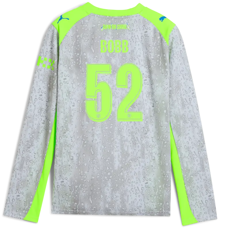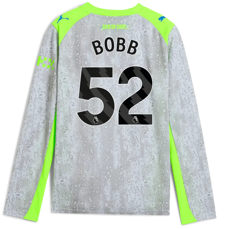 Kids’ Manchester City Third Jersey 2025/26 Long Sleeve With BOBB 52 Printing