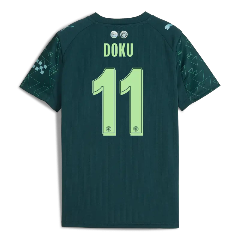 Kids’ Manchester City Away Jersey 2025/26 With DOKU 11 Printing
