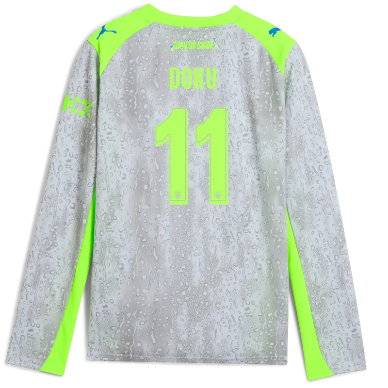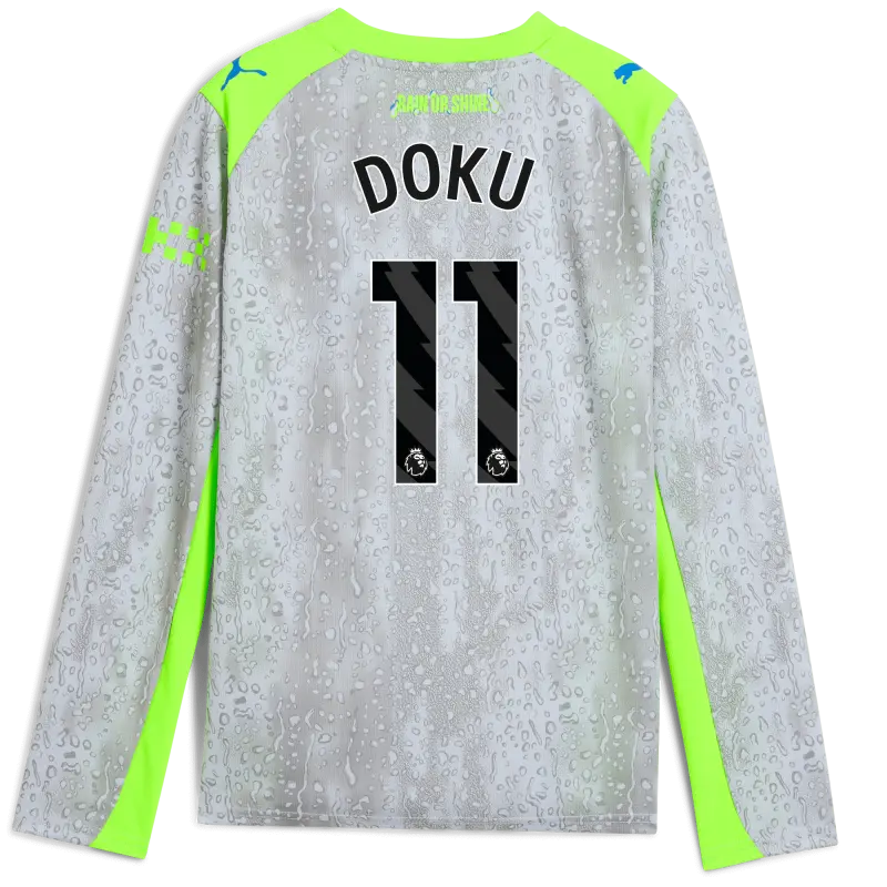 Kids’ Manchester City Third Jersey 2025/26 Long Sleeve With DOKU 11 Printing