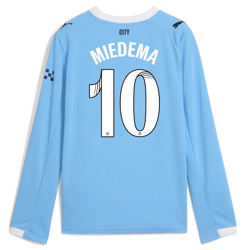 Kids’ Manchester City Home Jersey 2025/26 Long Sleeve With MIEDEMA 10 Printing