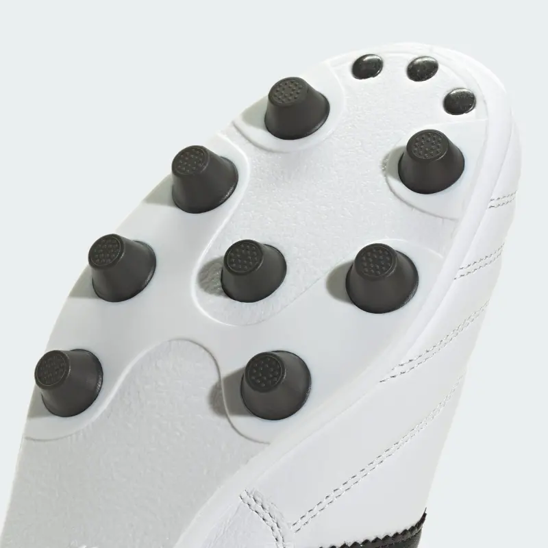First released in 1979, the adidas Copa Mundial has a long and storied history as one of the most iconic cleats in world soccer. Made in Germany, these ones feature a soft leather upper for a comfortable fit and a soft touch. Their firm ground outsole provides solid traction on dry natural grass.