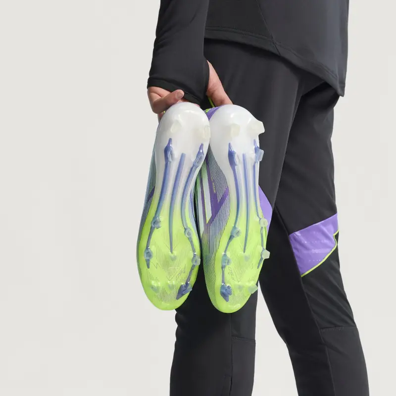 Find your fast to truly express yourself on the field. Feel the rush in adidas F50 cleats engineered for speed. These laceless Elite soccer cleats have a thin Fibertouch upper with an adidas PRIMEKNIT collar for lockdown and a Sprintweb 3D texture to help keep the ball close. Designed for dry grass pitches, the springy Sprintframe 360 outsole supports relentless pace.