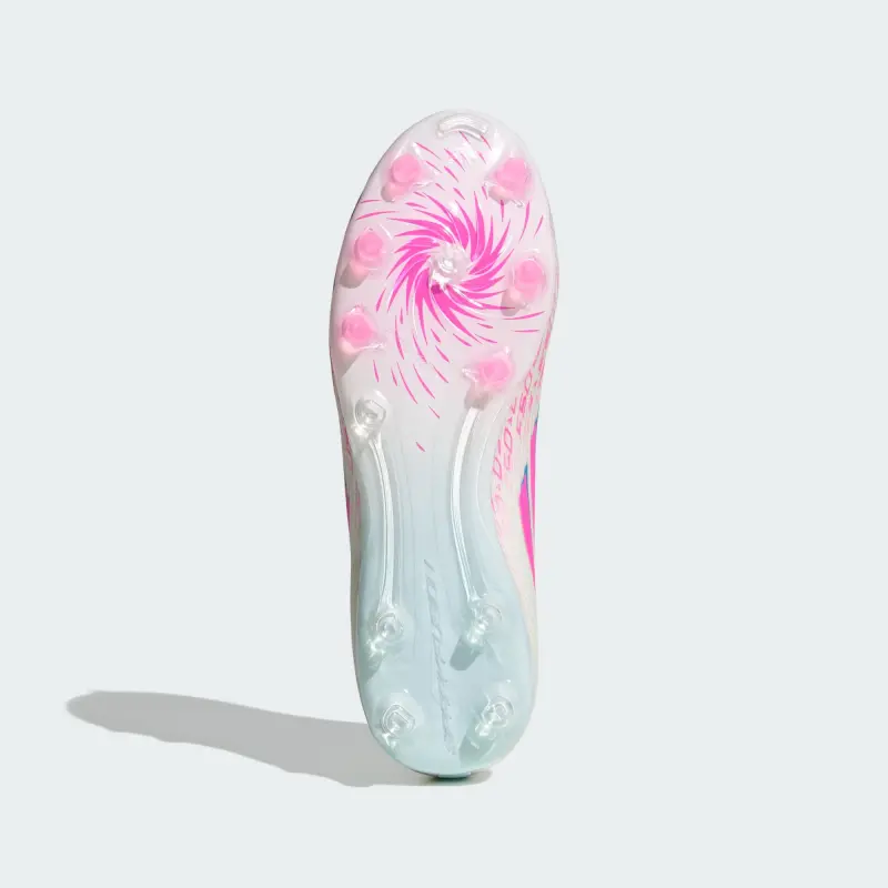 Designed for her. Light up the pitch in supportive F50 Sparkfusion cleats created specifically for female athletes. These adidas League cleats have a soft Fiberskin upper for comfort, a specially shaped last for the perfect fit, and a Sprintplate Fusion outsole that supports women’s biomechanics. The result? Footwear that will help you fulfill your soccer potential on firm ground and artificial grass.