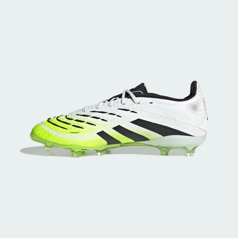 Discover the difference between aiming to score and knowing you will with adidas Predator cleats that are crafted for goals. These juniors’ Elite cleats have a HybridTouch upper with strategically placed rubber Strikeskin fins that provide perfect contact with the soccer. The Controlframe 2.0 firm ground outsole and adidas PRIMEKNIT collar are designed to give you a stable stance when the goal’s at your mercy.