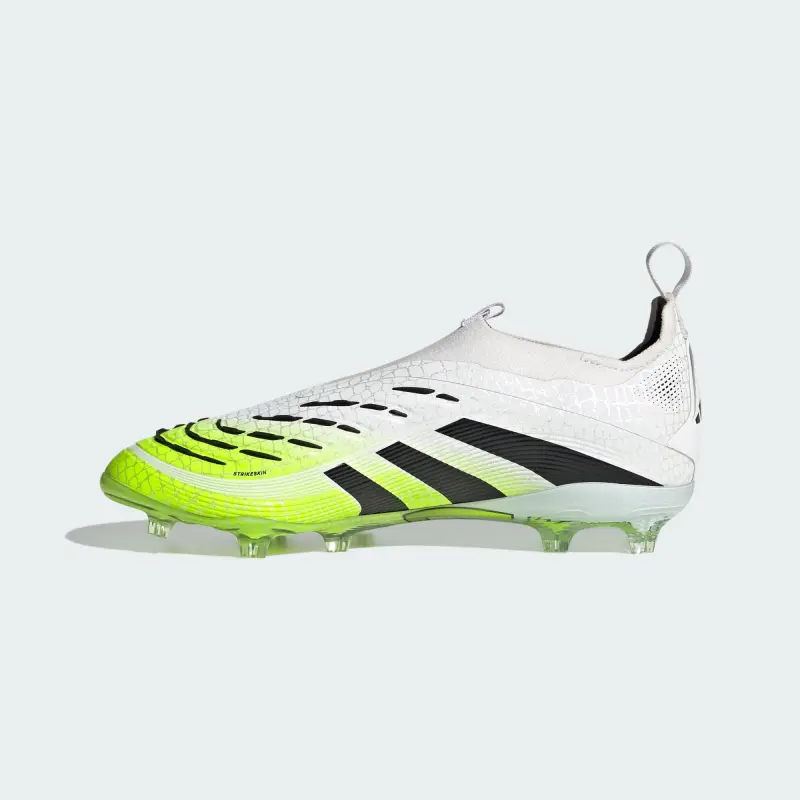 Discover the difference between aiming to score and knowing you will with adidas Predator cleats that are crafted for goals. These juniors’ Elite cleats have a HybridTouch upper with strategically placed rubber Strikeskin fins and a laceless construction that help provide perfect contact with the soccer. The Controlframe 2.0 firm ground outsole and adidas PRIMEKNIT collar are designed to give you a stable stance when the goal’s at your mercy.