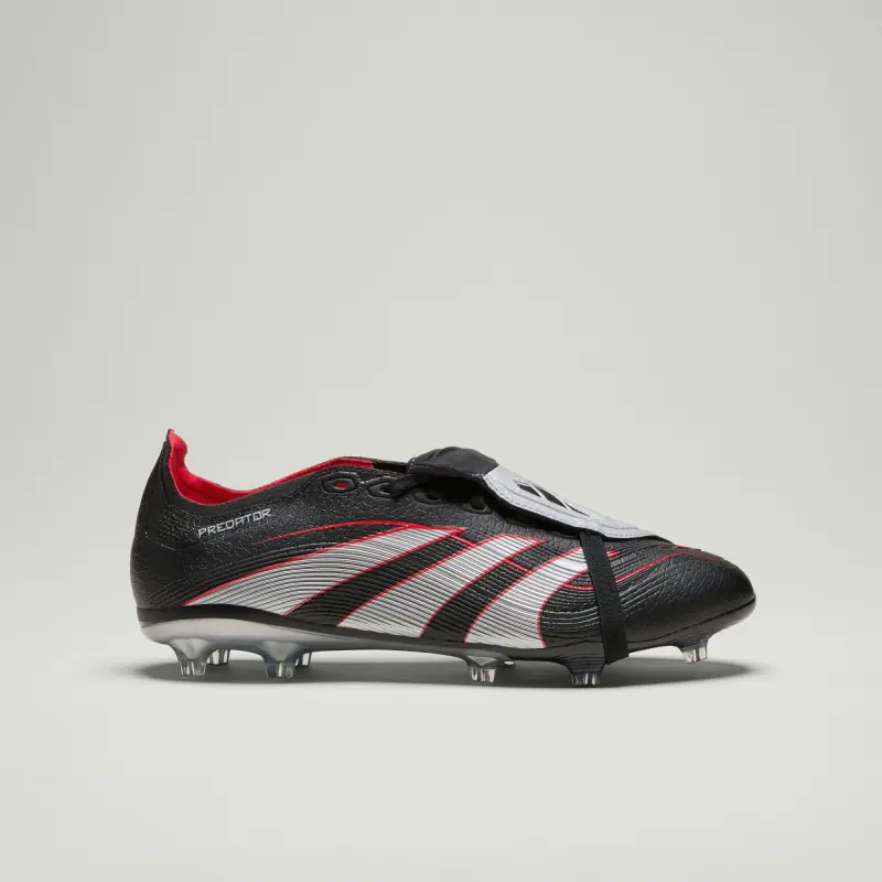 A twist on the iconic Predator color way, these limited-collection adidas League soccer cleats add a splash of silver for an opulent, sports car-inspired look. Their Hybridfeel upper incorporates an all-over 3D texture, a fold-over tongue and grippy Strikescale fins. A Controlplate outsole keeps you stable on firm ground and artificial grass.