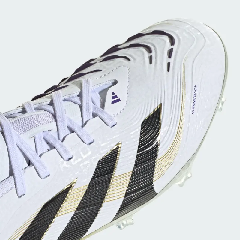 >Discover the difference between aiming to score and knowing you will with adidas Predator cleats that are crafted for goals. These Pro soccer cleats have a flexible HybridTouch upper with grippy rubber Strikeskin fins that help control every strike of the ball. Turn them over and you’ll find a full-length Controlplate outsole designed to keep you stable on dry grass.