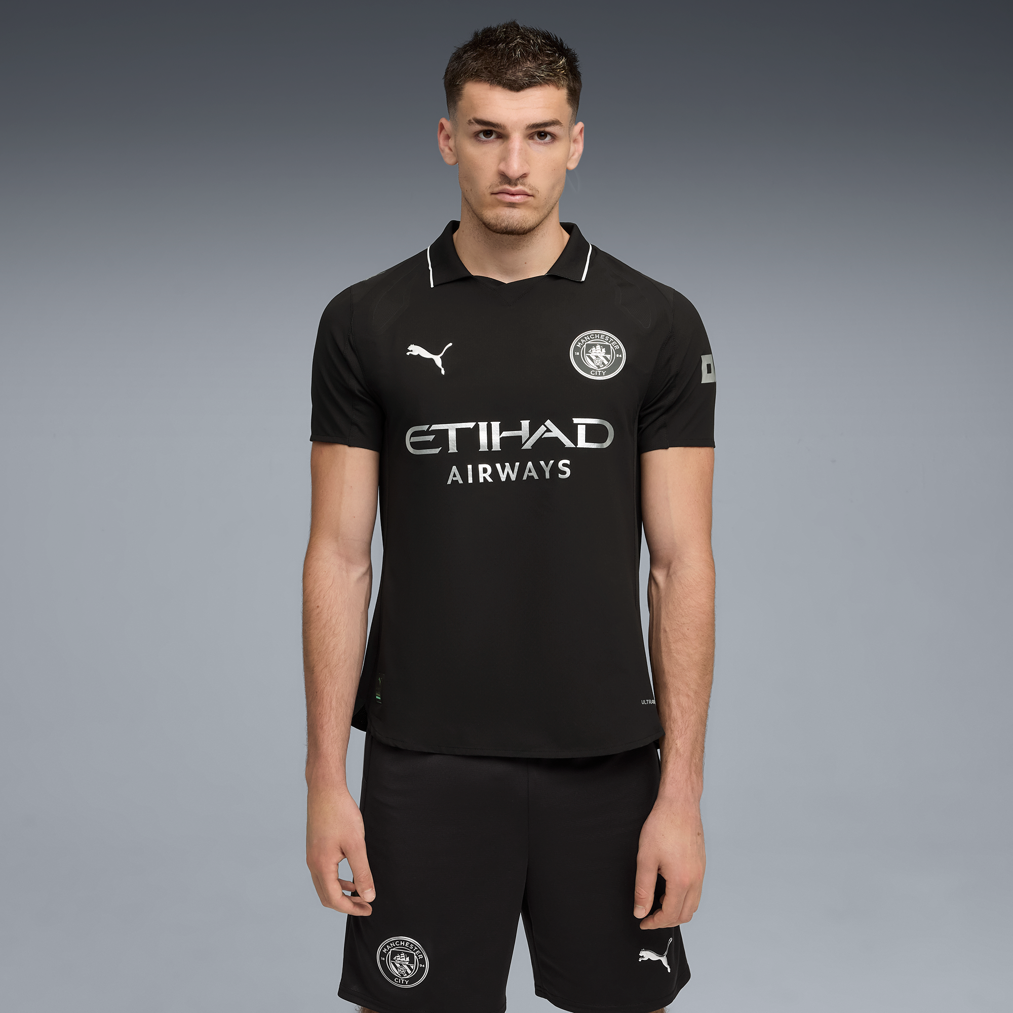Celebrate heritage and innovation with the Manchester City Authentic Away Jersey 2025/26. Inspired by Manchester City’s origins in Gorton, the 25/26 Away Kit reimagines the club’s first-known kit from 1884 with a bold all-black design and metallic detailing that brings the past into the present. A tribute to the first Cityzens, this kit marks the beginning of a new chapter—timeless, powerful and rooted in history. Built for performance, this slim-fit jersey features lightweight ULTRAWEAVE fabric and dryCELL sweat-wicking technology to keep you cool and comfortable. Mesh panels on the shoulders, sides, and underarms enhance breathability, while laser-cut detailing on the chest adds a premium finish. Finished with the Manchester City crest, PUMA Cat logos, and an Authentic Licensed Product label featuring a heat-transfer 3D weld mirage effect, this jersey is a must-have for all dedicated Cityzens. Comes in a premium gift box, beautifully wrapped in tissue paper to make the unboxing moment special.