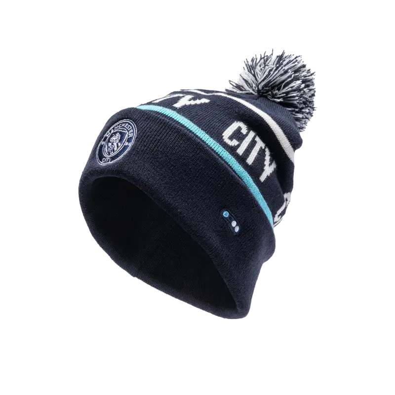 The Manchester City Crest Bobble Hat, crafted from premium acrylic, features a knit-in design and embroidered crest—perfect for keeping warm while proudly showing your City colours.